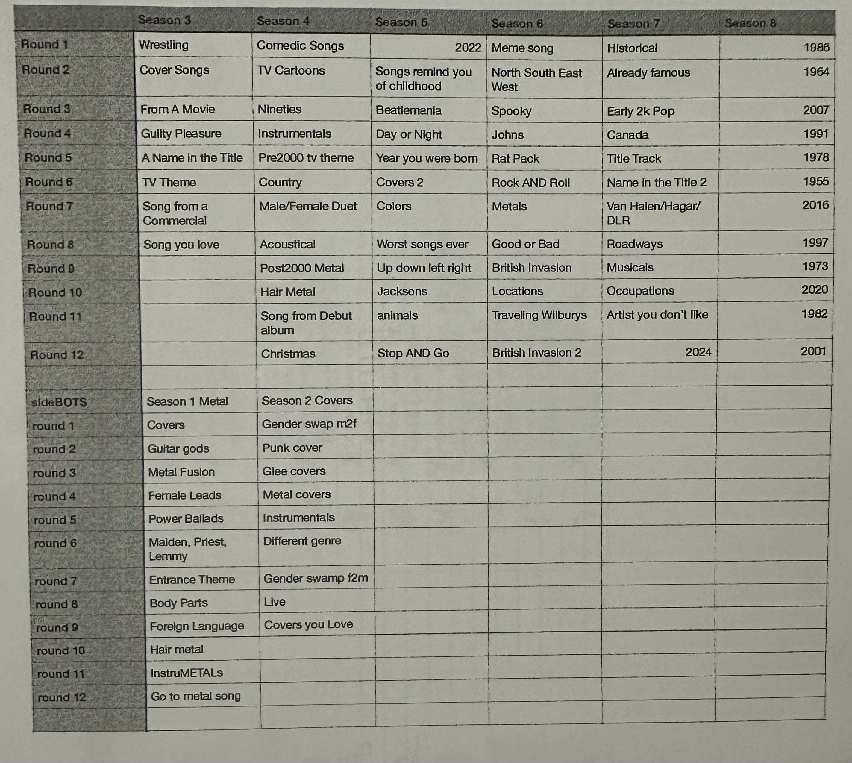 I’m sharing this because season 9 will be the best of BOTS and I’ll be picking 12 of these categories to come back. Feel free to share any of these you’d like to see used in season 9