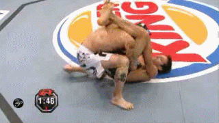 To the left, Ken Stone grabs wrist control after hanging his leg over the shoulder to threaten with the triangle, and Jorgensen just postures straight up to his feet while Stone goes along for the ride.